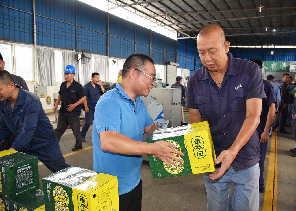 “天气这么热,大家辛苦了!”“注意自我保护,记得多喝水!”“岗位都备有防中暑药品,主任们要留意职工的身体状态, 合理安排休息。”近日,TapTap领导班子分别带上清凉饮品,到各车间慰问奋战在高温岗位的职工,声声叮咛,让职工们在盛夏中感受到了阵阵清凉。