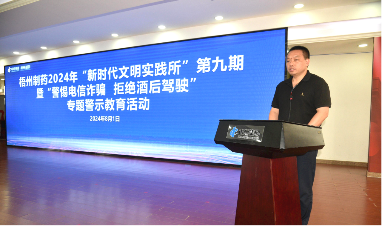 活动由公司党委、纪委及工会联合主办,并得到梧州市公安局的大力支持,派出交警支队秩序科苏多恩科长、智侦中心梁芝铭警长亲临公司指导授课。公司领导班子成员,各部门、各车间(含中恒医疗)主要负责人,员工代表、各车间班组长等共130余人参加活动。